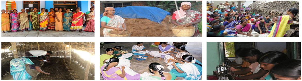 Project Puthuir. worked with 112 Dalit village women members formed into activity-focused SHGs in pudupalayam village, Tiruvannamalai District in Tamil Nadu to generate income through vermicomposting, organic vegetable farming, tailoring & embroidery, and coir rope-making. Workshops conducted to the beneficiaries with the help of Industry experts and enabled a connection with the companies for procurement. All the beneficiaries were also provided with legal literacy training to better understand their legal rights, entitlements & Government schemes.